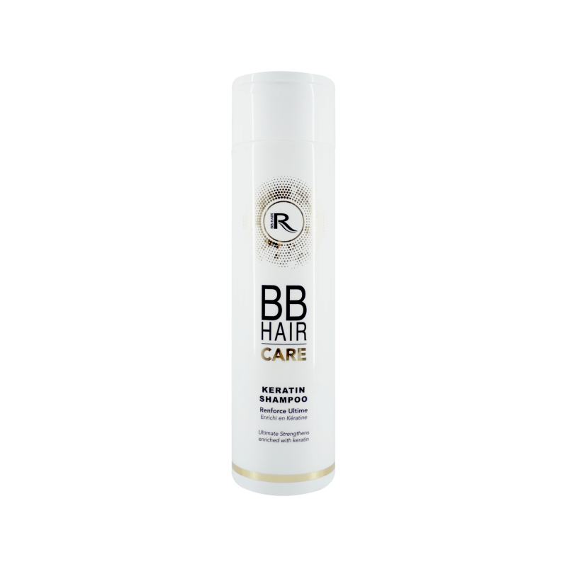 - KERATIN SHAMPOO BBHair Care (250ml) est un shampooing hydratant enrichi en kératine hydrolysée qui permet de renforcer les cheveux sans alourdir, d’apporter souplesse, brillance et de respecter le film hydrolipidique des cheveux fragilisés.