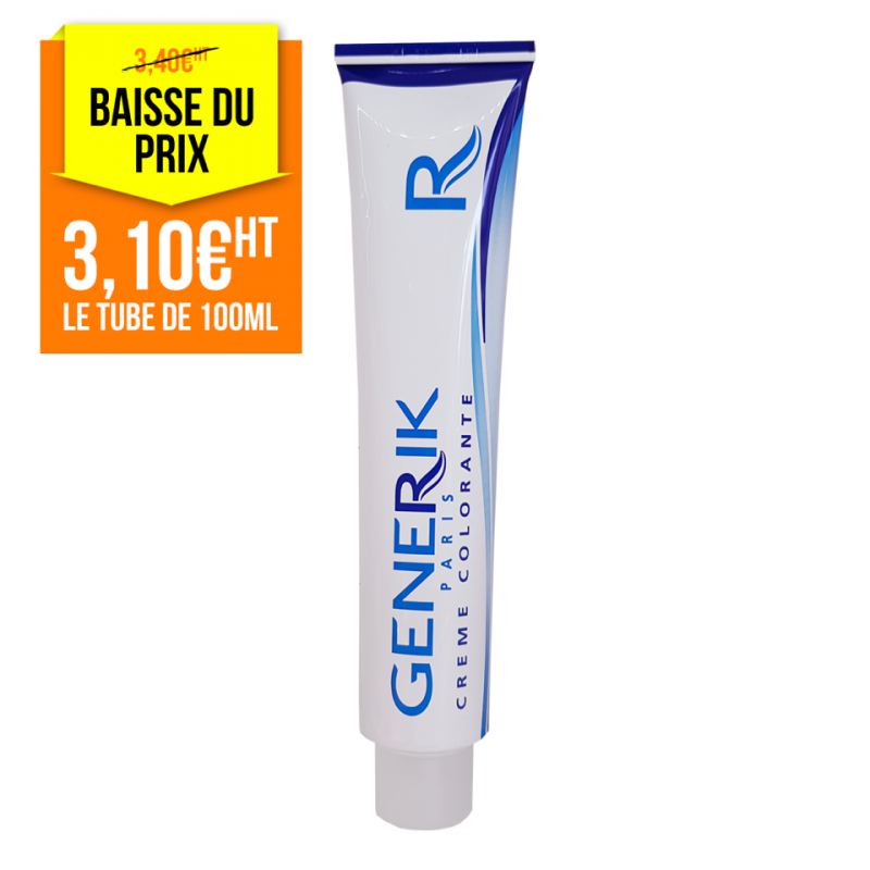 Choix de la nuance désirée. Après avoir compris les désirs du client choisir la nuance en consultant le nuancier. Choix de l'oxydant: 10vol. (3%) ton sur ton et tons plus foncés, 20vol. (6%) pour éclaircir 1-2 tons, 30vol. (9%) pour éclaircir 2-3 tons, 40vol. (12%) pour éclaircir 4 tons. Préparation : verser 50ml (moitié du tube) de GENERIK dans un bol non métallique. Ajouter 75ml d'oxydant (10,20,30 ou 40vol). Mélanger soigneusement jusqu'à l'obtention d'une crème homogène. N.B. Ultra éclaircissants : proportion de mélange 1:2. Application:appliquer le produit en commencant par les racines: temps de pause 35minutes, émulsioner, rincer, utiliser un shampooing GENERIK spécifiques après la couleur.