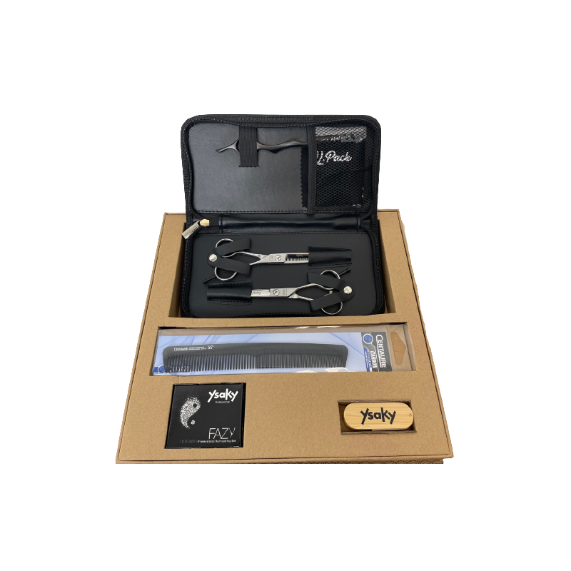 NOUVEAUTÉ : Coffret d'instruments de coupe Ysaky en acier japonais ! Pour les professionnels de la coiffure, en salon, à domicile ou en formation. Ce kit professionnel est composé de tout le matériel et accessoires de coiffure pour la coupe des cheveux :