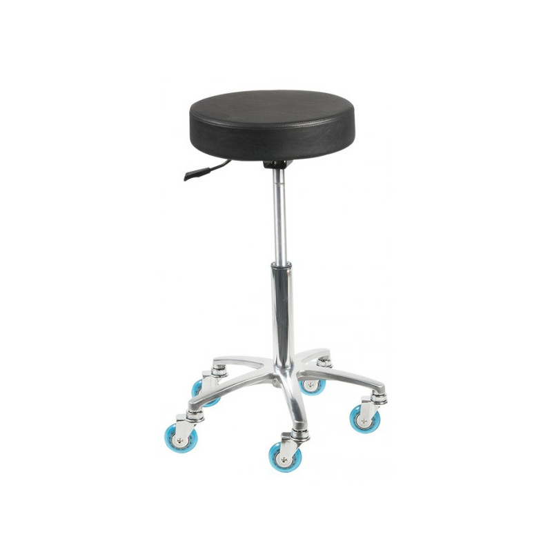 KONFOREL TABOURET PROFESSIONNEL SUPER TEAM Assise NOIRE Roulette Axe-11mm type ROLLER SPEEDY 75mm double roulement à bille Super silence roulette Polyurethane Isolation anticheveux antistatique Deux roulements à bille: un sur la roulette et un sur l'axe de pivot permettant un roulage tout en douceur et silence. Capot anticheveux Tabouret Roma noir, galette diam 34cm assise confort 8 cm, base métallique 45cm Position Basse Hauteur 58 cm (50 plus assise confort 8 = 58cm) Position haute Hauteur 78 cm (70 plus assise confort 8 = 78cm)