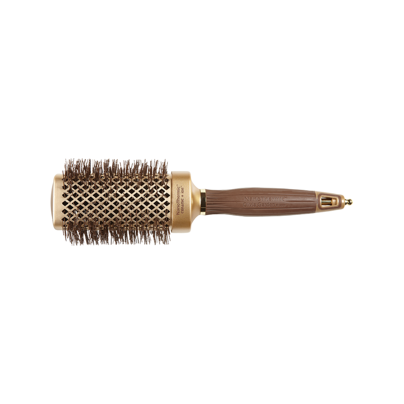 La brosse thermique NanoThermic d’Olivia Garden est le coup de pouce idéal. Il accélère le processus de séchage grâce à des trous plus larges dans le baril pour un débit accru. Les cheveux et le cuir chevelu sont protégés de la chaleur et bien saisis par les poils ondulés uniques.